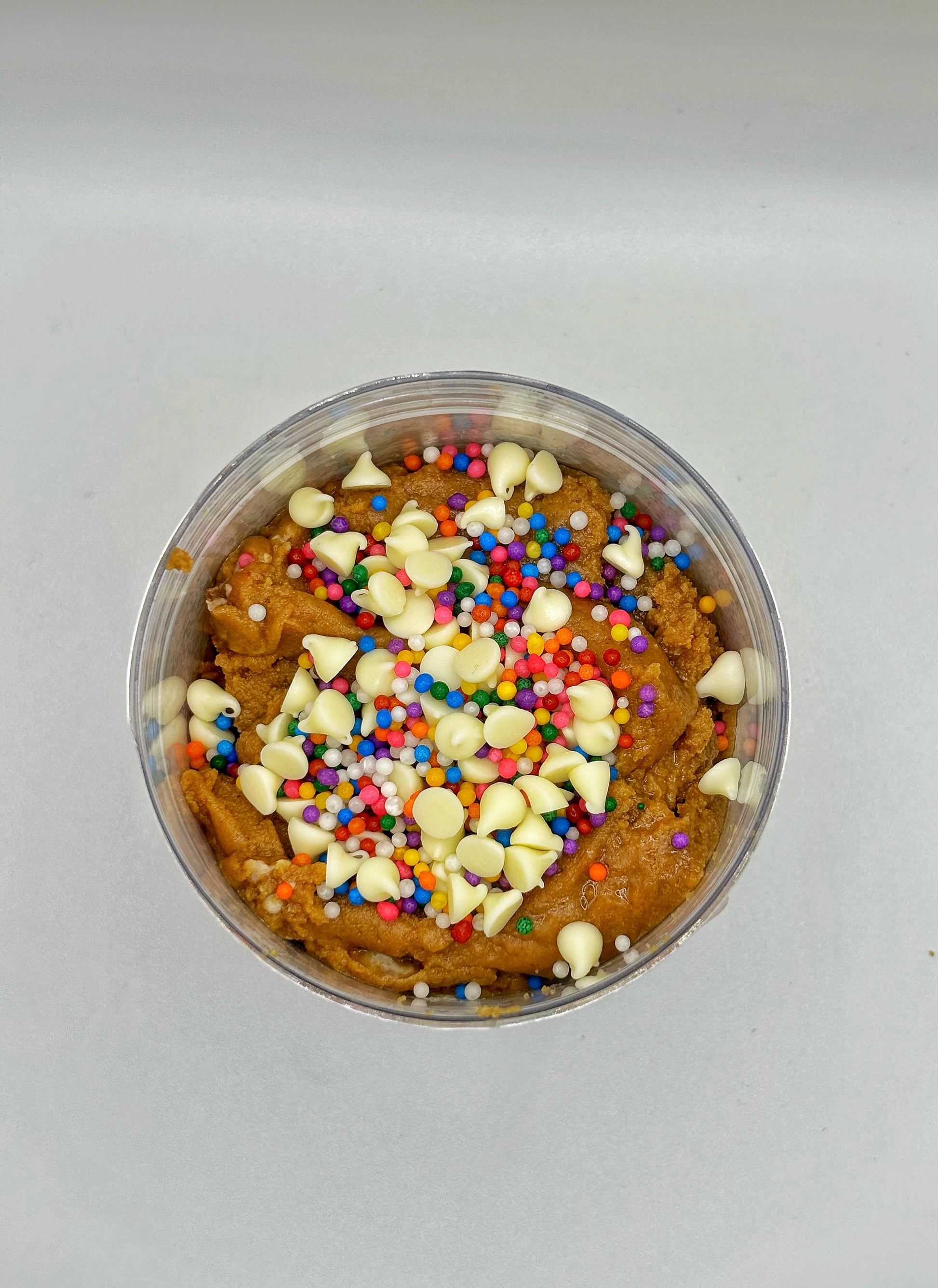 Treat yourself to Confetti Cake Protein Peanut Butter, a handmade spread made with simple ingredients and just 70 calories per tablespoon. This lower-calorie peanut butter is packed with protein and delivers an insanely delicious confetti cake flavour, perfect for a guilt-free indulgence that fuels your day.